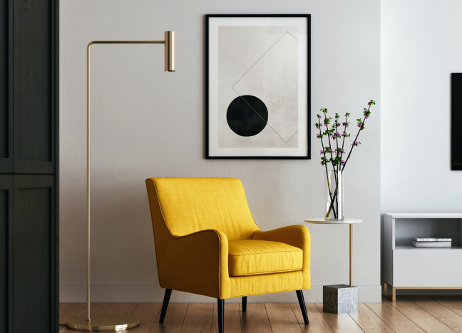 Премиальный напольный торшер золотистого оттенка
